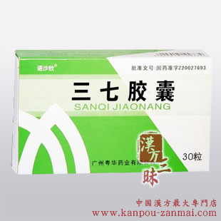 散瘀止血,打撲ねんざによる内出血や外傷による出血時の止血、消腫、止痛。この薬品はカプセル状で、100%の漢方薬です。味が苦いものです。